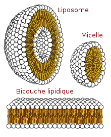 În detergenți, prezența laolaltă a unor grupuri funcționale, cu afinitate și pentru apă și pentru grăsimi, permite formarea de micele, moleculele organizându-se în funcție de repulsia față de solvent: în apă, extremitățile lipofile sunt întoarse spre interiorul micelei, în timp ce extremitățile hidrofobe formează interfața micelară cu solventul. Într-un solvent organic, de exemplu în ulei, aranjarea este inversată. Formarea de micele are loc la o temperatură numită temperatura Krafft, și o anumită concentrație, numită concentrație critică micelară sau CMC. În acel moment, agenții tensioactivi formează aglomerări de câteva zeci sau sute de molecule. Aceste micele, care separă mediul intern de solvent, sunt modele de organizare simplă, amintind de membranele celulelor vii.
