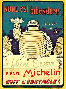 Simbolul companiei este micul om gonflabil Bibendum, desenat de artistul francez Marius O'Galope (numele real este Rousillon) în 1898. Pe schița publicitară, refuzată de berărie din München, silueta greoaie a umplut cea mai mare parte a compoziției. În exterior, Bibendum este alcătuit dintr-un teanc de anvelope de diferite diametre, la care sunt atașate mâinile.