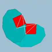 (cu acoperire dublă a pentagoanelor). Figura vârfului este un patrulater autointersectat. Un poliedru neconvex are fețe care se intersectează care nu reprezintă laturi sau fețe noi. Doar cele marcate cu sfere aurii sunt vârfuri, iar cele cu linii argintii sunt laturi.