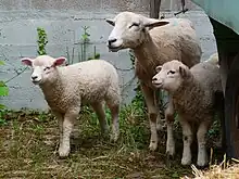 ![]() Oaie domestică cu doi miei | |