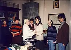 ![]() Echipa Muzeului Antipa îl felicită pe Mihai Băcescu cu prilejul celei de-a 88-a aniversări, 28 martie 1996 | |||