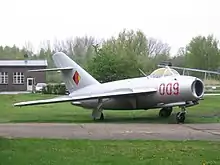 ![]() Mikoian-Gurevici MiG-17 restaurat în culorile Forțelor Aeriene Poloneze. | |