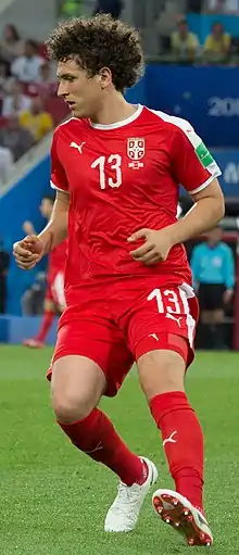 El a debutat pentru echipa națională de fotbal a Serbiei la 11 noiembrie 2017 într-un meci amical împotriva Chinei.[13]