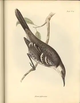 | Reprezentare artistică a speciei Mimus trifasciatus | |