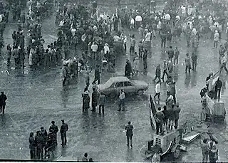 În 18 februarie 1990, în Piața Victoriei a avut loc o manifestație anticomunistă, urmată a doua zi, de o incursiune a minerilor la București. Evenimentele din acele zile au rămas cunoscute ca Mineriada din februarie 1990. Acțiunea fusese anunțată în urmă cu câteva zile, prin numeroase manifeste lansate în Capitală. Piața din fața sediului Guvernului Provizoriu (Palatul Victoria) s-a umplut curând cu câteva mii de manifestanți care au început să scandeze lozinci împotriva Frontului Salvării Naționale și a președintelui din acea vreme, Ion Iliescu. Inițial, manifestația era îndreptată împotriva Securității și comunismului, ca apoi, în scurt timp, nemulțumirile să fie îndreptate împotriva celor care preluaseră puterea după căderea lui Nicolae Ceaușescu.[2] Pe pancarte protestatarilor era scris: „Jos Securitatea, suntem cu armata!”, „Securiștii-n mină, să avem lumină!”, „Securiștii pe tarla, să crească producția!”, „Revoluția a fost doar o rotație de cadre?”, „F.S.N.=P.C.R.”, „F.S.N., du-te în U.R.S.S.!”, „Nu mai vrem comuniști, securiști, activiști!” etc. Reprezentanții manifestanților au cerut să aibă un dialog cu cei din guvern. La un moment dat, și-a făcut apariția în zona pieții, lângă intrarea în sediul Guvernului dinspre Bulevardul Iancu de Hunedoara, Gelu Voican Voiculescu, vice prim-ministru. Acesta s-a afișat ostentativ cu o armă automată. Gesturile și atitudinea lui Gelu Voican Voiculescu aveau să declanșeze nemulțumiri în rândurile celor prezenți. Au loc o serie de evenimente încă neelucidate pe deplin. Unii manifestanți au reușit să intre în Guvern.