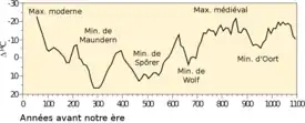Această epocă este corespunzătoare mijlocului unei perioade denumite mica eră glaciară, în care climatul terestru era destul de friguros, cel puțin în Europa, în America de Nord și în China. Climatul terestru este, prin urmare, cel puțin în parte, funcție a activității magnetice a Soarelui. Două ipoteze sunt evocate: