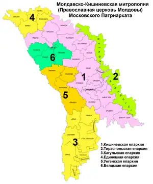 Biserica Ortodoxă din Moldova include șase eparhii și două vicariate: