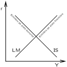 Curba LM ("Curba cererii pentru mijloace lichide egale cu masa monetară") reprezintă toate combinațiile posibile dintre venit și rata dobânzii care echilibrează piața banilor. Această piață se află în stare de echilibru atunci când oferta de bani (cantitatea de mijloace bănești, sau masa monetară, în circulație) este egală cu cererea de bani (cantitatea de bani, de care agenții economici au nevoie).