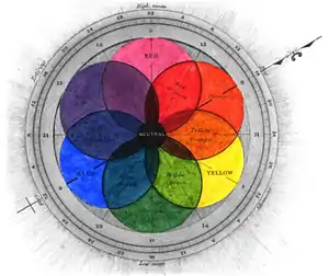 În experimentele sale cu lumina, Isaac Newton și-a dat seama că anumite culori ar putea fi create prin amestecul unor culori primare. În Opticks, Newton a publicat o paleta de culori, sub formă de disc, pentru a demonstra relația geometrică dintre aceste culori primare. Această diagramă a fost mai târziu confundată și greșit înțeleasă ca fiind aplicabilă de asemenea și la pigmenți,[2]. Newton a fost însă conștient de diferențele dintre culorile obținute prin amestecare aditivă (prin suprapunere) și substractivă (estompare).[3]