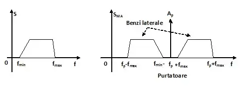 - Ambele benzi laterale (DSB - double side bands): cu sau fără purtătoare suprimată