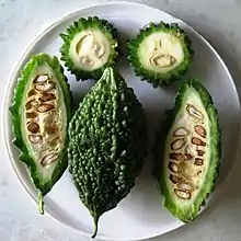 Momordica charantia [ku gua 苦瓜], cunoscut sub numele de castravetele amar sau pepenele amar,[2] este de origine necunoscută, dar este utilizată în medicina populară chineză ca plantă amară. În medicina ayurvedică este cunoscută sub denumirea de karela, în Europa fiind cunoscută sub denumirea de „castravete amar” datorită gustului său puternic amar. În cazul speciei Momordica charantia atunci cînd fructul este copt, acesta se rupe cu un pocnet caracteristic.