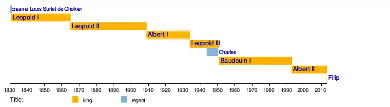 În urma independenței Belgiei în 1830, Congresul Național al Belgiei a decis instaurarea unei monarhii constituționale ca formă de guvernământ. În februarie 1831 aceștia i-au propus tronul lui Ludovic, Duce de Nemours, fiul regelui francez Ludovic-Filip, dar acesta a refuzat din motive de politică internațională. În urma refuzului acestuia, Congresul l-a numit pe Erasme-Louis, Baron Surlet de Chokier Regent al Belgiei pe data de 25 februarie 1831, acesta devenind primul șef de stat al Belgiei independente. Pe data de 4 iunie, Leopold de Saxe-Coburg și Gotha a fost numit Rege al Belgienilor de către Congresul național. Acesta a depus jurământul constituțional pe data de 21 iulie 1831, zi care este celebrată ca Ziua Națională a Belgiei.