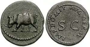 Spre anul 400 î.Hr., romanii au înlocuit trocul[13] bazat pe capete de vite sau folosirea monedelor grecești printr-un sistem monetar relativ arhaic. Era vorba, la început, de « blocuri » de bronz sau de aramă numite aes rude sau aes infectum[14], apoi, la sfârșitul secolului al IV-lea î.Hr. de lingouri[15] de bronz care reprezentau, pe una dintre fețe echivalentul lor în capete de vite.