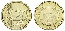 - seria 2005, care prezintă stema cardinalului șambelan, șeful interimar al statului Cetatea Vaticanului, suprapusă peste blazonul Camerei Apostolice. Pe monede apare textul „SEDE VACANTE” și anul emisiunii marcat în cifre romane, adică „MMV”;