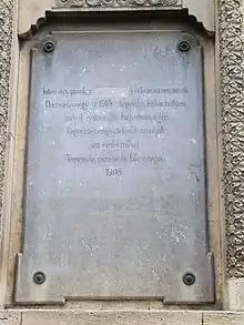 - „Sfintei Fecioare, patroane [a maghiarilor], pe locul unde după tradiția de secole a suferit Gheorghe Doja cumplita moarte (+1514), locuitorii orașului Timișoara oferă ofrandă pioasă acest monument. 1906.”[4]