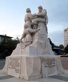 Monumentul şi Universitatea de Medicină, aflată în spatele său
