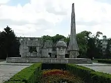 Amplasat în centrul municipiului, monumentul este opera sculptorului Vida Gheza și a arhitectului Anton Dâmboianu. Inaugurat în anul 1964, în prezența ministrului Forțelor Armate de atunci, Leontin Sălăjan, complexul monumental este realizat din piatră albă și are dimensiuni impresionante: deschiderea frontală de 18 m, adâncimea de 5 m și înălțimea de 12 m. Acest însemn comemorativ se compune din cinci elemente cu semnificații simbolice: un cap de țăran, care inspiră demnitate și statornicie (simbolul răscoalelor țărănești), o poartă cu incrustații asemănătoare celor care împodobesc porțile maramureșene („poarta jertfelor”), o femeie plantând o floare (simbolul reînnoirii), chipul unui ostaș, care impresionează prin masivitatea și trăsăturile sale aspre și un obelisc asemănător turlelor bisericilor maramureșene (simbolul flăcării veșnice). Pe acest obelisc este înscris următorul text: „Glorie ostașilor armatei romăne, căzuți în luptele pentru eliberarea patriei”. Monumentul este înscris la poziția nr. 304, cod SM-III-m-A-05382, în „Lista monumentelor istorice”, actualizată prin Ordinul ministrului Culturii si Cultelor nr. 2314/8 iulie 2004.
