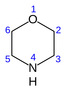 Morfolina este un compus heterociclic cu formula chimică O(CH2CH2)2NH. Nucleul său este alcătuit din grupe funcționale amină și eter, ambele fiind legate ciclic.