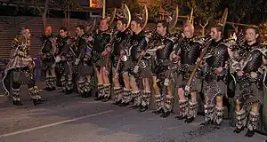 În fiecare zi a sărbătorii sunt organizate ample defilări pe principalele artere ale orașului. Cei care defilează sunt organizați în comparse - adică grupări (grupe, cete) - care pot fi de două feluri: musulmane sau creștine. Fiecare comparsă are o vestimentație proprie și unică. Fiecare comparsă are stemă, steag și sediu și poartă diferite nume.