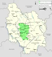 Limitele parcului natural regional Morvan (între 2008 și 2020)