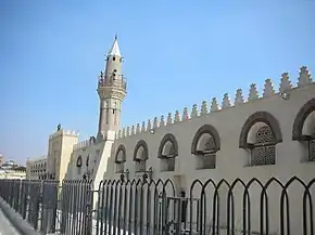 În timpul califilor fatimizi moscheea a avut cinci minarete, adăugându-i-se unul la intrare. În prezent au mai rămas doar două, fiind rezultatul operei de restaurare a lui Mourad Bey. În anul 1169 orașul Fustat a fost incendiat de către cruciați, iar moscheea a fost distrusă, fiind refăcută în anul 1179 de sultanul Saladin.
