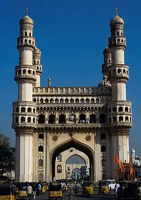 În anul 1591, sultanul Muhammad Quli Qutb Shah (1580-1612) a construit în orașul Hyderabad, fondat de el, o mare moschee cu scopul de a comemora împlinirea a o mie de ani după Hegira. La construcția moscheii au participat numeroși arhitecți veniți din Persia.