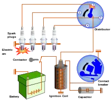 Ca urmare, presiunea amestecului carburant se ridică la 5-10 daN/cm2, iar temperatura ajunge la 500-600°K. Cu puțin înainte ca pistonul să ajungă la un punct mort interior o scânteie electrică dată de bujie, aprinde amestecul și astfel are loc arderea rapidă, sub formă de explozie. După ardere rezultă gaze cu o presiune de 25-40 daN/cm2 și temperatură de 2273-2573°K. |