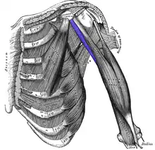 Între tendonul de inserție al mușchiului coracobrahial și mușchiul subscapular se găsește o bursa, numită bursa mușchiului coracobrahial (Bursa musculi coracobrachialis).