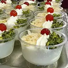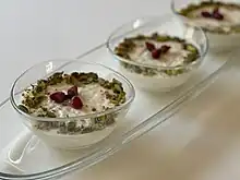 ![]() Muhalebiu decorat cu fistic și petale de trandafir | |
