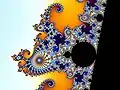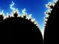 • Pasul 12: În exteriorul apendicelor pot fi recunoscute insule de structuri. Au forma mulțimilor Julia Jc. Cea mai mare dintre ele poate fi găsită în centrul "cârligului dublu" din partea dreaptă.