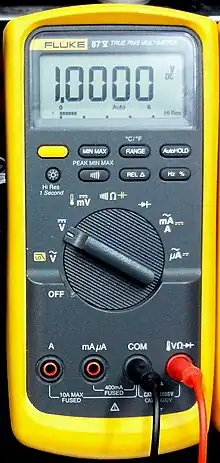 Primul multimetru digital a fost fabricat în 1955 de Non Linear Systems.[24][25] Se susține că primul multimetru digital portabil a fost dezvoltat de Frank Bishop de la Intron Electronics în 1977,[26] care la acea vreme a reprezentat o descoperire majoră pentru service-ul și găsirea defectelor în domeniu.