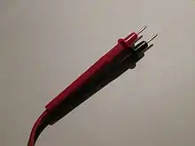 Un multimetru poate folosi multe sonde de testare diferite pentru a se conecta la circuitul sau dispozitivul testat. Clipsuri crocodil(d), clemele cu cârlig retractabile și sondele ascuțite sunt cele mai comune trei tipuri. Sondele cu pensete sunt folosite pentru punctele de testare apropiate, cum ar fi, de exemplu, dispozitivele SMD(d). Conectorii sunt atașați la cabluri flexibile, bine izolate, terminate cu conectori corespunzători aparatului. Sondele sunt conectate la aparatele portabile de obicei prin mufe banană(d) acoperite sau încastrate, în timp ce multimetrele de banc pot utiliza mufe banană(d) sau conectori BNC(d). Uneori s-au folosit și prizele de 2 mm și șuruburi de prindere, dar sunt mai puțin frecvent utilizate astăzi. Standardele actuale de siguranță impun acum mufe banană izolate.