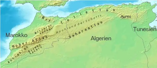 • Atlasul Saharian având înălțimea maximă 2008 m situat în nordul Algeriei;