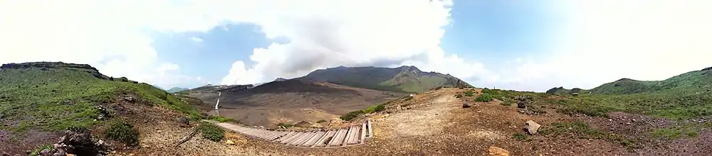Ejecțiile din erupția calderei imense au acoperit în urmă cu 90,800 ani mai mult de 600 km ³. Aceste ejecții au fost aproximativ egale cu volumul Muntelui Fuji, se presupune că fluxul piroclastic a acoperit jumătate din Kyūshū.