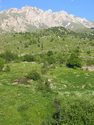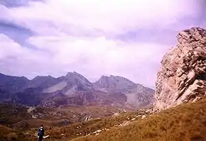 ![]() Masivul Korab văzut din Albania. Vârful cel mai înalt este cel din stânga | |