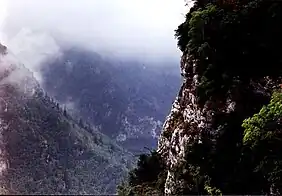 - a doua zonă, între 600 și 1.400 de metri, este zona pădurilor de fagi, brazi și conifere montane, aici întâlnindu-se pinul negru (Pinus nigra var. pallasiana) în tufișuri neamestecate și compacte, sau în păduri mixte cu fagul (Fagus sylvatica). Fagii formează mici pâlcuri, compacte sau amestecate cu brad, pin bosniac (Pinus heldreichii) sau pin negru, ocupând solurile mai bogate și mai umede. În grupuri mici sau în tufișuri se întâlnesc specii de brad macedonean (Abies borissi-regis), carpen oriental (Carpinus orientalis), ulm (Ulmus glabra), alun (Coryllus avellana), corn (Cornus mas), tisa (Taxus baccata), precum și o varietate semnificativă de plante erbacee. În chei și ravene se găsesc platani orientali (Platanus orientalis) și sălcii (Salix eleagnos).