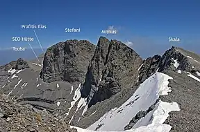 | Prima ascensiune | antichitate: pelerini religioși sau preoți[5][6]:351 2 august 1913: Christos Kakkalos, Frederic Boissonnas și Daniel Baud-Bovy |