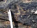 Șisturile albastre se găsesc în mod obișnuit în centurile orogene ca terase litologice în contact fals cu roci facies șisturi verzi[lower-alpha 6] sau rareori eclogit - Firn (în germana elvețiană färn, Pronunție în germană: /fɪərn/, în traducere din germana veche „de anul trecut”) este névé parțial compactat, un tip de zăpadă care a rămas din sezoanele trecute și a fost recristalizată într-o substanță mai densă decât nevé. Este gheața care se află într-un stadiu intermediar între zăpadă și gheață glaciară