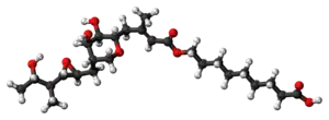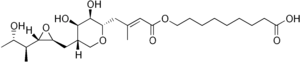 Mupirocina este un antibiotic derivat de acid pseudomonic care este utilizat în tratamentul unor infecții bacteriene ale pielii, precum sunt impetigo și foliculita.[10][11] Mai este utilizat pentru eliminarea stafilococului auriu meticilino-rezistent (MRSA) din nas, când este prezent dar asimptomatic.[10] Calea de administrare este cutanată, fiind formulat sub formă de creme sau unguente.[10]