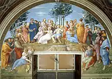 O imagine binecunoscută a muzelor este reprezentarea Parnasului cu Apollo și muzele precum și poeți celebri, pictată de Rafael, între 1509 și 1510, în Stanza della Segnatura[2] din Vatican.[3]