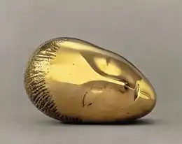 Sculptura este un model al unui cap, fără corp, cu marcaje pentru anumite caracteristici, cum ar fi părul, nasul, buzele și cu ochii închiși. În lucrarea A History of Western Art (O istorie a artei occidentale), Laurie Adams spune că sculptura are „o curbiliniaritate abstractă, de calitate și un contur neted care creează o impresie de eleganță."[4] Prin turnarea lor în metal, cu un finisaj fin, aceste sculpturi au „forme arhetipale moderne, autosuficiente".[5]