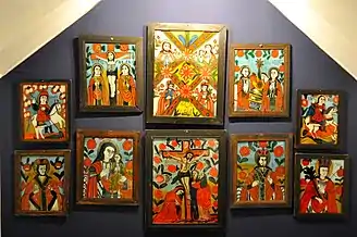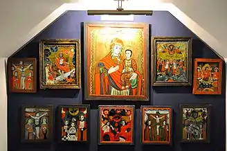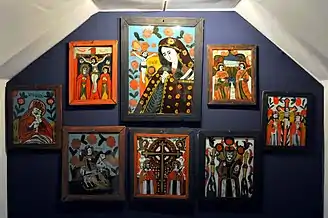 Două săli sunt dedicate icoanelor pe sticlă, un mare număr de icoane ilustrând diferitele faze ale celui mai vechi centru transilvănean de pictură pe sticlă care a ființat la Mânăstirea Nicula și în satul din apropiere.