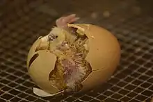 La păsări, puii ies din ouăle în care s-au dezvoltat după 3 săptămâni crăpând coaja oului cu ciocul. Ornitorincul, chiar dacă este considerat mamifer, se naște tot din ouă.