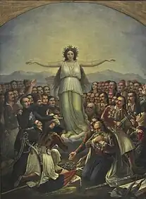 „Holocaustul Arcadian” de Giuseppe Lorenzo Gatteri; scenă din timpul Revoltei Cretane (1866-1869).