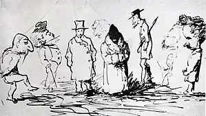 - A Desenul Familiarii cafenelei Guichard a fost obținut de către Virgil Cioflec din colecția lui Alfred Bernath și se află astăzi la Muzeul de Artă din Cluj.[12] Personajele au fost identificate de Bernath printr-o legendă scrisă de acesta. Fiecare dintre cei figurați în această schiță, au jucat câte un rol mai mult sau mai puțin important în viața lui Nicolae Grigorescu.[12] Petru Verussi fusese și el, începând din anul 1864, elevul lui Sébastien Cornu.[12] Grigorescu l-a cunoscut la Paris. Portretul lui Verrusi a fost publicat de Alexandru Vlahuță în biografia pe care a dedicat-o artistului.[13] Urechia, Grigore Grandea și Nae Bassarabescu au scris în publicațiile vremii despre Grigorescu.[12] Față de Urechia, pictorul a avut o prietenie sinceră, dovadă că unele dintre lucrările de o importanță majoră din creația sa s-au aflat în colecția acestuia.[12] În anul 1962, toate aceste lucrări erau în posesia Primăriei Bucureștiului (Sfatul Popular) și în colecția doctorului I.N. Dona, fiul uneia dintre cumnatele istoricului.[12] Astfel, în anul 1870 Grigorescu i-a făcut cadou lui Urechia tabloul, în ulei, intitulat Adunarea Națională, datat în 11 ianuarie 1870. Inginerul Gheorghe Duca apare și într-o schiță pe care a publicat-o Cioflec în biografia Grigorescu.[14][12]