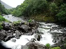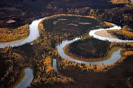 Un râu este o cale navigabilă naturală,[38] de obicei de apă dulce, care curge spre un ocean, un lac, o mare sau un alt râu. În câteva cazuri, un râu se scurge pur și simplu în sol sau se usucă complet înainte de a ajunge la un alt corp de apă. Râurile mici pot fi, de asemenea, numite prin alte câteva nume, inclusiv pârâu, gârlă, râușor, râurel, râuț; nu există o regulă generală care să definească ceea ce poate fi numit râu. Multe nume pentru râurile mici sunt specifice locului geografic.