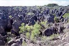 Nauru a fost una din cele trei mari insule de rocă fosfatică din Oceanul Pacific (celelalte două fiind Banaba (Insula Ocean) din Kiribati și Makatea din Polinezia Franceză); totuși, rezervele de fosfat de calciu sunt astăzi aproape complet epuizate. Exploatarea minieră a fosforitelor în platoul central a lăsat în urmă un teren arid acoperit cu bolovani de calcar cu înălțimi de până la 15 m. Un secol de minerit a dus la devastarea a patru cincimi din suprafața insulei. Mineritul a avut impact și asupra zonei economice exclusive din jur, 40% din formele de viață marine fiind ucise de silt și reziduuri fosforitice.[31]