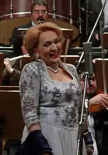 ![]() Nelly Miricioiu, pe podiumul de concert al Radiodifuziunii; foto: Mihai Cosma | |