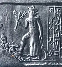 | Nergal cu toiagul și sabia în formă de seceră calcă în picioare inamicul | |