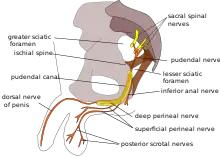 Nervul pudendal se divizează în mai mute ramuri (unele în funcție de sex):[4]